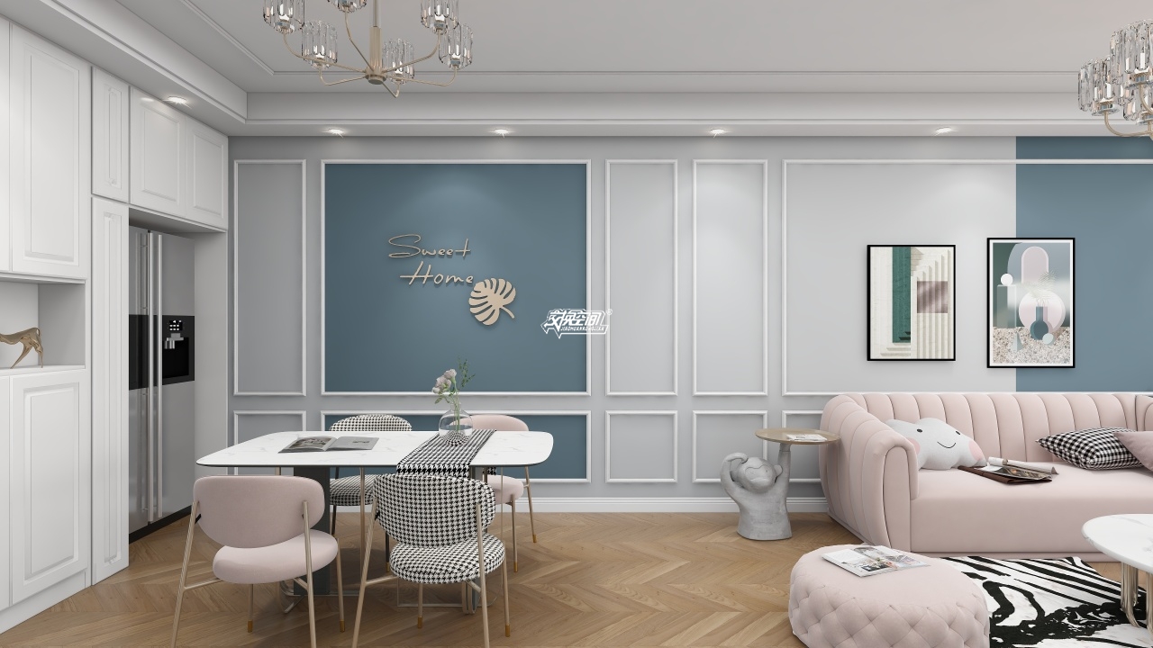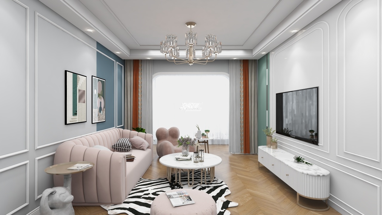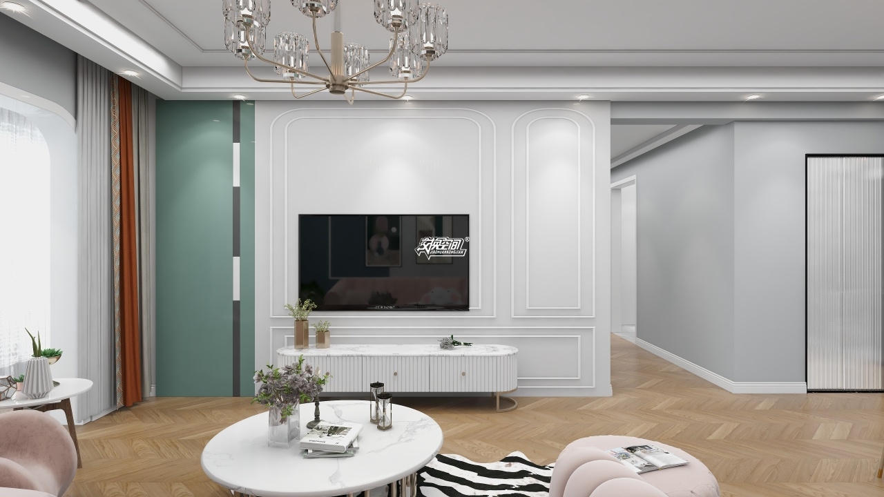 首層客廳綠色電視背景墻設(shè)定,吐納出一座面朝大海的露臺,在原本寬敞的空間里,打造出自然與室內(nèi)的融合與連通。