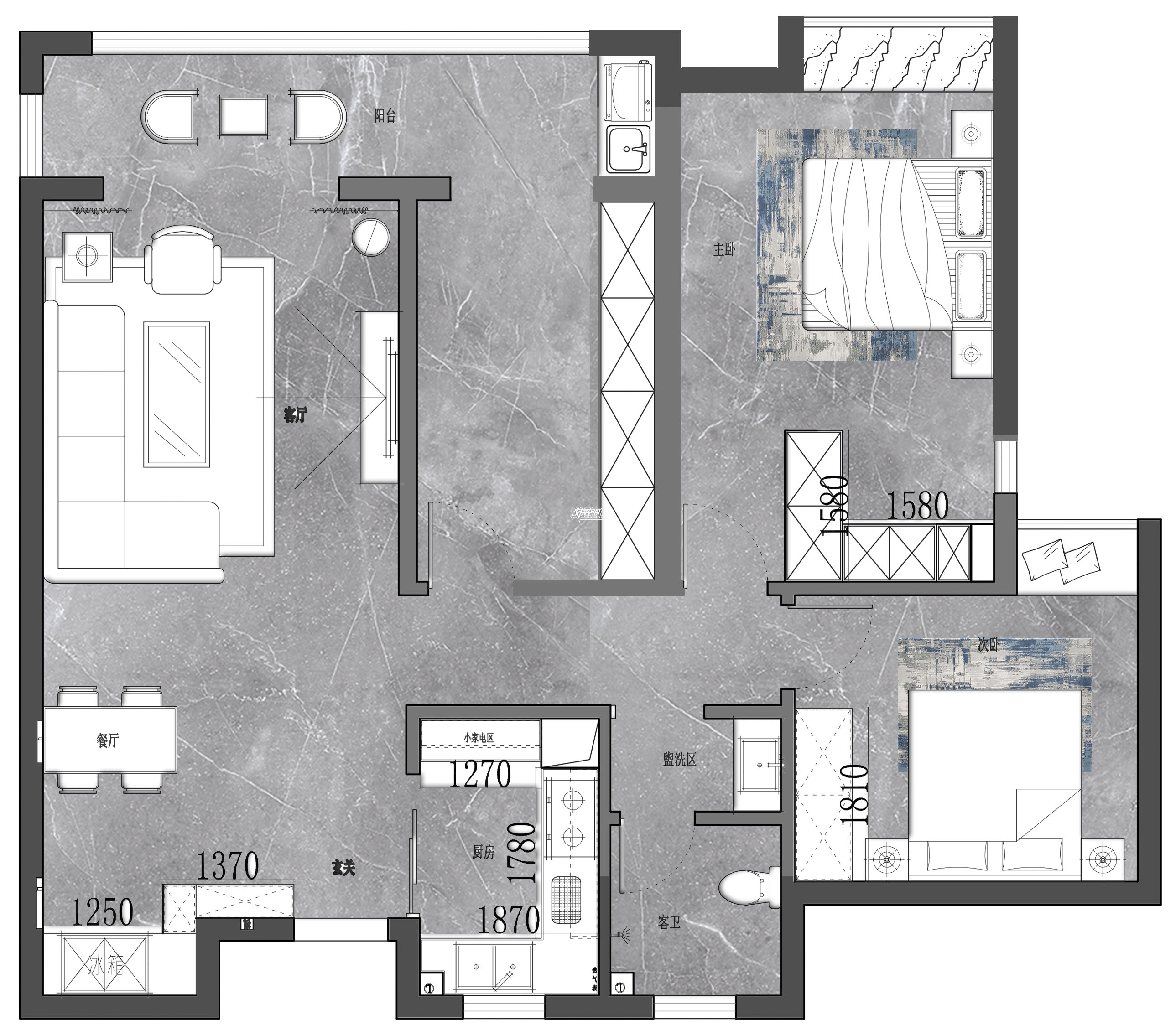 客廳深淺呼應(yīng)的軟硬搭配,沖淡了客廳莊嚴(yán)的氣氛,流瀉在躺椅與沙發(fā)上的自然光與人工光,光影交錯中平添一份精致與雅趣,溫馨又閑適。